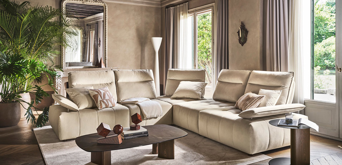 Equipe est un système de canapé qui allie impact esthétique et confort. Doté d’un matelassage et de coutures exclusivement sur mesure, il est équipé d’un dossier mobile qui augmente considérablement la profondeur de l’assise, tandis que l’accoudoir est réglable en trois positions pour un confort personnalisé. La possibilité de combiner plusieurs composants, dont une chaise longue, un angle à 90° et un pouf, en fait un système polyvalent qui peut être personnalisé en fonction de vos besoins.