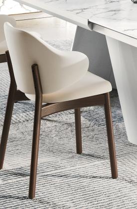 Holly est l’assise qui réinterprète le style des assises des années 50 à travers des formes souples et accueillantes, parfaitement compatibles avec un matériau chaud et expressif comme le bois. La structure se distingue par ses sections souples, qui s’associent parfaitement au caractère accueillant des coques rembourrées, mettant en valeur la douceur et l’invitation à s’asseoir.