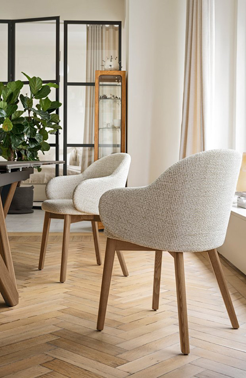 Calligaris Design. Busetti Garuti Redaelli - Réf. CS2206, à partir de 540 € Dimensions : l 62 x h 81 x p 57 cm Holly Fab est l'évolution de la chaise Holly, se distinguant par un dossier encore plus confortable et enveloppant qui embrasse l'assise. Le siège est soutenu par une base solide en bois massif ou par quatre pieds en métal minces qui affine sa ligne.