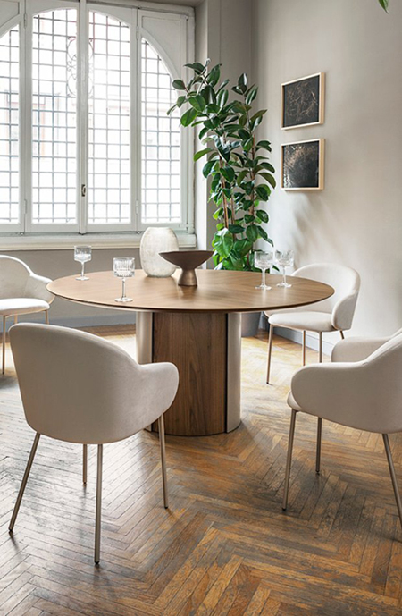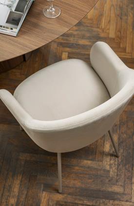 Holly Fab est l'évolution de la chaise Holly, se distinguant par un dossier encore plus confortable et enveloppant qui embrasse l'assise. Le siège est soutenu par une base solide en bois massif ou par quatre pieds en métal minces qui affine sa ligne.