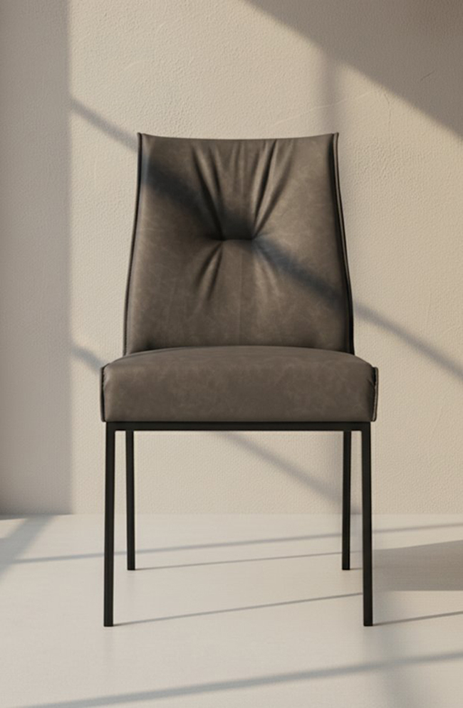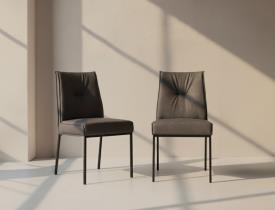 Calligaris Réf. CS1908, à partir de 465 € Dimensions : l 50 x h 92 x p 59 cm Moderne et polyvalente, ROMY est une chaise rembourrée dotée d’un piètement en métal à 4 pieds. L’assise, rembourrée et extrêmement moelleuse, comprend une structure intérieure pourvue de sangles élastiques garantissant un confort maximal. Confortable et élégante, elle s’intègre avec désinvolture dans la salle à manger de la maison. Choisissez votre préférée. Créez votre siège idéal : choisissez la structure, le revêtement, la couleur et la texture parmi plus de 100 options. Bois, métal, tissus lisses ou texturés, cuir : des combinaisons illimitées pour exprimer le style