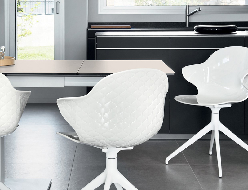 C’est l’esprit créatif, au carrefour entre design et fonctionnalité, qui distingue la chaise SAINT TROPEZ, dont les caractéristiques essentielles sont le soin du détail et le design recherché et décoratif avec la réalisation d’un dossier à effet capitonnage. Cette version sur piètement pivotant est dotée d’un mécanisme de retour. Choisissez votre préférée.