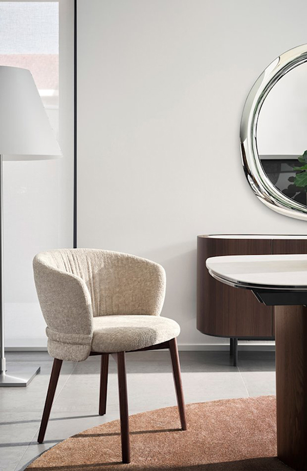 Calligaris Design. Matilde Sessolo - Réf. CS2238, à partir de 687 € Dimensions : l 64 x h 79 x p 59 cm Vanilla est une chaise qui, par ses proportions et son confort. Inspirée du monde de la mode, elle se distingue par ses plis particuliers du tissu et l’élément horizontal qui entoure le dossier comme une ceinture. Les pieds en bois ou en métal soulignent son élégance innée. Créez votre siège idéal : choisissez la structure, le revêtement, la couleur et la texture parmi plus de 100 options. Bois, métal, tissus lisses ou texturés, cuir : des combinaisons illimitées pour exprimer le style