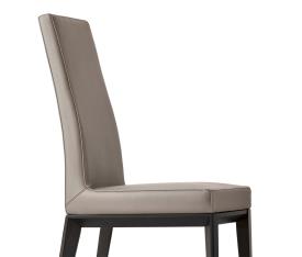 Chaise modèle BESS, à structure en bois massif. Assise rembourrée et dossier haut. Les pieds et les côtés de la structure, à la forme facettée presque triangulaire, sont en bois massif alors que l'assise est réalisée avec des sangles élastiques. Le design et le soin apporté lors de la conception de cette chaise moderne, se remarque également dans la continuité visuelle de la ligne, légèrement courbée, qui se forme entre les pieds arrières et le dossier haut. Adaptée pour aménager la salle à manger d’une maison ou d’un restaurant. Découvrez toute la gamme de finitions, sur notre boutique de chaises sur internet.