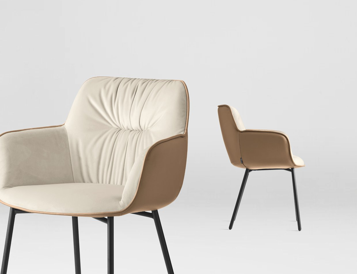 La chaise COCOON est né dans le but précis de créer un modèle qui reprenne les formes des chaises des années 60, mais avec des lignes plus modernes et actuelles, avec des sections et des épaisseurs généreuses pour rendre l’assise confortable et accueillante. Les finitions dans des tissus souples et plissés mettent d’autant plus en valeur l’effet doux et enveloppant au style légèrement rétro. Chaise réalisé avec une monocoque enveloppante en mousse de polyuréthane moulée à froid à basse densité.
