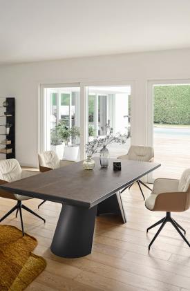La chaise COCOON est né dans le but précis de créer un modèle qui reprenne les formes des chaises des années 60, mais avec des lignes plus modernes et actuelles, avec des sections et des épaisseurs généreuses pour rendre l’assise confortable et accueillante. Les finitions dans des tissus souples et plissés mettent d’autant plus en valeur l’effet doux et enveloppant au style légèrement rétro. Chaise réalisée avec une monocoque enveloppante en mousse de polyuréthane moulée à froid à basse densité. Cette version avec structure pivotante à 360° est parfaite
