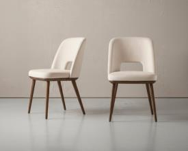 La nouvelle chaise rembourrée FOYER apporte confort et détente à ceux qui s’y abandonnent. Cela est dû à la coque enveloppante et rembourrée en multiplis courbé et à l’assise souple avec structure en sangles élastiques, soutenue par un élégant piètement en bois composé de quatre pieds coniques, dont les tons se marient avec les finitions de la coque.