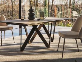 La chaise rembourrée FOYER apporte confort et détente à ceux qui s’y abandonnent. Le tout grâce à une coque enveloppante et rembourrée en multiplis courbé et à une assise souple avec structure à sangles élastiques, soutenue par une élégante base en métal à quatre pieds.