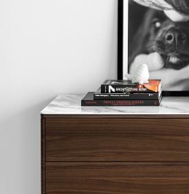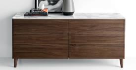 commode modèle BOSTON à 6 tiroirs pour la chambre, avec structure en bois. BOSTON est une commode au design linéaire et moderne. Les tiroirs sans poignées s’ouvrent grâce à un système « push-pull » et sont équipés d’un mécanisme de fermeture amortie. Les pieds sont en bois dans une finition coordonnée ou en aluminium, au choix.