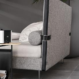 Inspiré du canapé du même nom, ce lit se distingue par certains aspects esthétiques marquants. Une tête de lit avec bande périmétrale qui peut être réalisée dans une matière ou une finition contrastée. Des pieds fins et cylindriques pour soutenir le tour de lit. Ce lit, entièrement déhoussable, est réalisé en tissu ou en cuir.