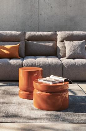 Une table basse qui, par sa forme cylindrique et sa coupe horizontale, rappelle un bambou. Réalisée en céramique émaillée, c’est un complément qui occupe une position particulière, entre la table basse fonctionnelle et l’accessoire au toucher artisanal.