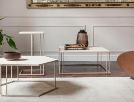RENEE, une collection de tables basses disponibles en différentes formes géométriques, dimensions et hauteurs. Les plateaux, hexagonaux et carrés, sont proposés en verre miroir avec un agréable effet de vagues ou en céramique. Le dessin de ce modèle propose un compromis équilibré entre lignes minimalistes et le raffinement que rendent ces tables facilement adaptables à toutes les exigences