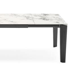 La table à rallonges ALPHA correspond parfaitement à l’idée de produits intelligents, élégants et polyvalents capables de répondre à tout moment aux « variables » normales d’une maison vivante pour rendre la vie de tous les jours plus simple et agréable. Grâce à son esthétique qui joue sur la combinaison de pieds en bois associés à un choix multiple de plateaux en céramique, elle est adaptable parfaitement dans tout type d’espace. Les pieds périmétraux à section légèrement conique à facettes, assurent un confort optimal à tous les invités. Les rallonges sont montées sur un cadre à système d’ouverture guidé.
