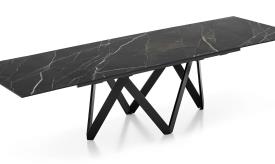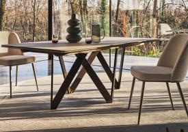 CARTESIO est une table à la ligne élégante et sobre, caractérisée par un plateau disponible en bois ou en céramique et une structure portante originale en métal teint composée de 4 éléments en « V » rectangulaires. Initialement conçue pour n’être qu'une table fixe, Cartesio fait son entrée dans la catégorie des tables à rallonges de Calligaris : elle est dotée de deux rallonges latérales de 40 cm chacune s’ouvrant individuellement.