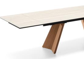 ICARO est une table extensible avec piètement en bois plaqué et plateau en bois ou en céramique. Avec son plateau rectangulaire additionné de deux rallonges latérales de 40 cm chacune s’ouvrant individuellement, elle est solide, robuste, polyvalente et particulièrement élégante. Les ailes d’Icaro (Icare) reprennent vie dans votre salle à manger, pour la rendre particulièrement raffinée.