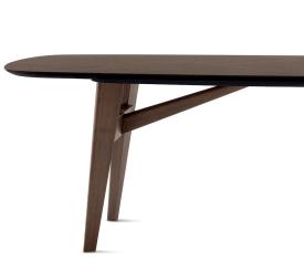 ABREY est une table fixe élégante et solide caractérisée par une base en frêne massif à section arrondie. L’aspect essentiel de la structure confère une élégance extrême à la table et souligne l’aspect unique des plateaux, qui diffèrent à la fois par leurs dimensions, leur forme et leurs matériaux.