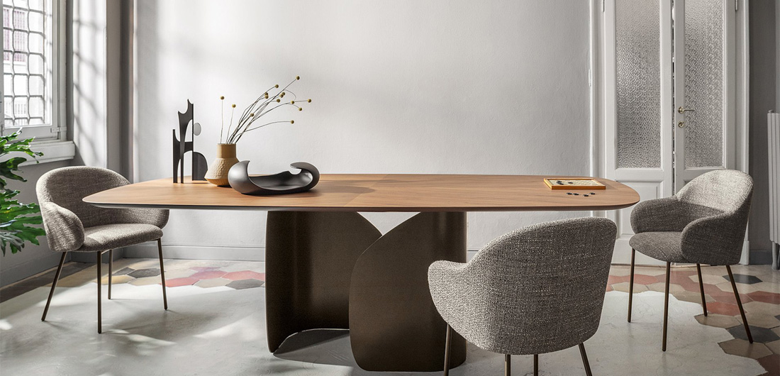 Twins est une table au grand impact visuel grâce à sa base, composée de deux éléments en tôle courbés et moulés qui, comme deux ailes, font voler visuellement le plateau. De nombreuses finitions sont disponibles, permettant d'interpréter la table de manière classique ou moderne.