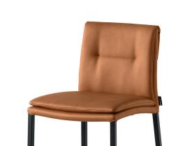 La collection Carmen se caractérise par des lignes élancées et minimalistes. Les pieds en métal sont fins, tout comme l'épaisseur de l'assise et du dossier, rendus confortables par le rembourrage avec coussin fixe qui crée un pli intéressant au niveau du dossier.