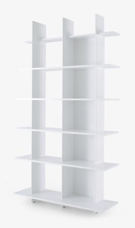 Cinna Design. Marie C Dorner - Bibliothèque simple laque blanc, à partir de 2142,11 € Dimensions : l 120 x h 216 x p 37 cm ESPRIT DU MODÈLE : répétition de montants et d'étagères de profondeurs décroissantes vers la droite ou vers la gauche et le haut, le volume de cette bibliothèque s'estompe comme si elle tendait à disparaître vers le plafond. Ce jeu crée une diversité de rangements inattendue et intéressante. C'est au montage que le client choisira de positionner le montant le plus profond sur la droite ou sur la gauche de sa bibliothèque. Dans le cas de 2 bibliothèques juxtaposées on pourra donc avoir un effet visuel de vague, convexe ou concave, selon la position choisie pour chaque montant. Les fonds et les joues sont commandées sous des références séparées, mais il est recommandé de les choisir de la même couleur ; les étagères sont en revanche librement contrastées ou assorties.
