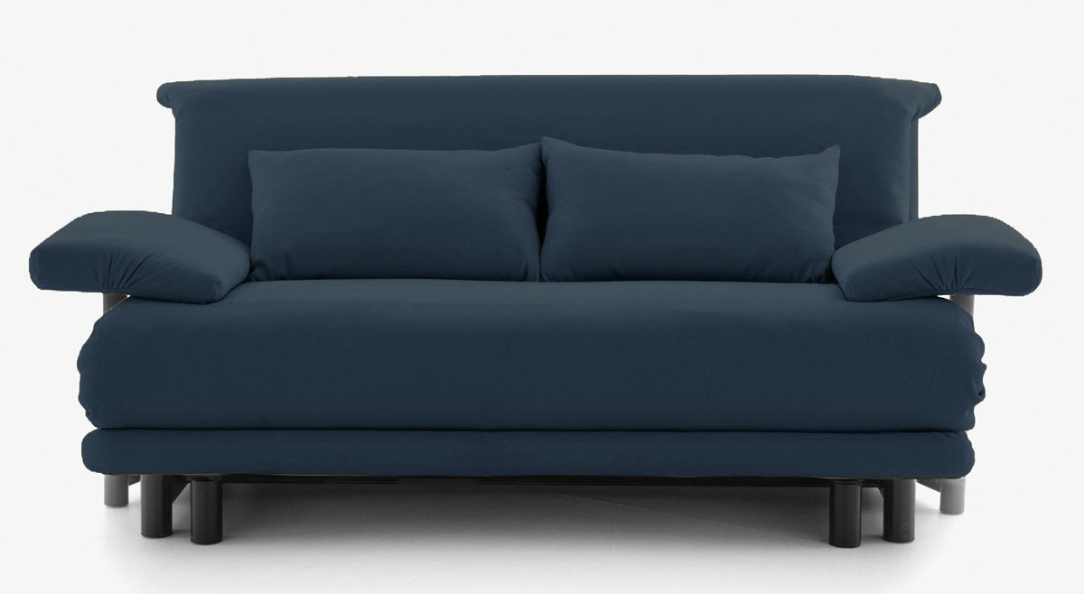 Cinna Design. Claude Brisson - Canapés-lits à partir de 3111 € Dimensions : l 188 x h 82 x p 103 cm Ce modèle propose une position intermédiaire entre le canapé et le lit: la méridienne, position relax assise dépliée. STRUCTURE ET CONFORT La structure est en multiplis + panneau de particules avec mécanique acier et sommier à lattes (épaisseur 9 mm) en bouleau. L'assise est au choix en mousse polyéther (28 kg/m3 - 3,0 kPa) ou en mousse polyuréthane haute résilience Bultex d'épaisseur 9 cm et de densité 38 kg/m. Le dossier est en mousse polyéther (28 kg/m3 - 3,0 kPa). Les banquettes-lits avec cale-reins sont fournies avec 2 cale-reins 60 pour la petite banquette-lit, et 2 cale-reins 78 pour la grande. Les canapés-lits avec cale-reins sont fournis avec 2 cale-reins 60 pour le grand canapé-lit, et 1 cale-reins 78 pour le petit. Les clients souhaitant commander les cale-reins séparément doivent les prévoir dans les mesures ci-dessus. Les accoudoirs (mousse polyéther 28 kg/m3 - 3,0 kPa + ouate de polyester en nappe 200 g/m2) pivotent sur leur axe pour dégager le couchage en position lit. Maniement très simple, confort optimum en canapé comme en lit (153 x 194 x 8, 119 x 194 x 8). En position dépliée : la profondeur est de 200 cm pour la banquette-lit L155. Coutil coloris écru (50% polyester/50 % coton) nettoyable à sec. Ce coutil est traité ''HealthGuard'' (Anti-bactérien, Anti-microbien, Anti-fongique). Isolateur en mousse fourni pour mettre entre les lattes et l'assise dépliée. Pour détails sur la manipulation, suivre la notice. MULTY offre tous les avantages du modèle conçu pour couchage permanent. Cale-reins oreiller en option. Cale-reins et accoudoirs déhoussables. Les prêt-à-dormir comprennent 2 draps (dessus, dessous) reliés au pied par une couture. Ils sont conçus pour faciliter l'usage des canapés-lits. LAVABLES A 60°. canapé lit