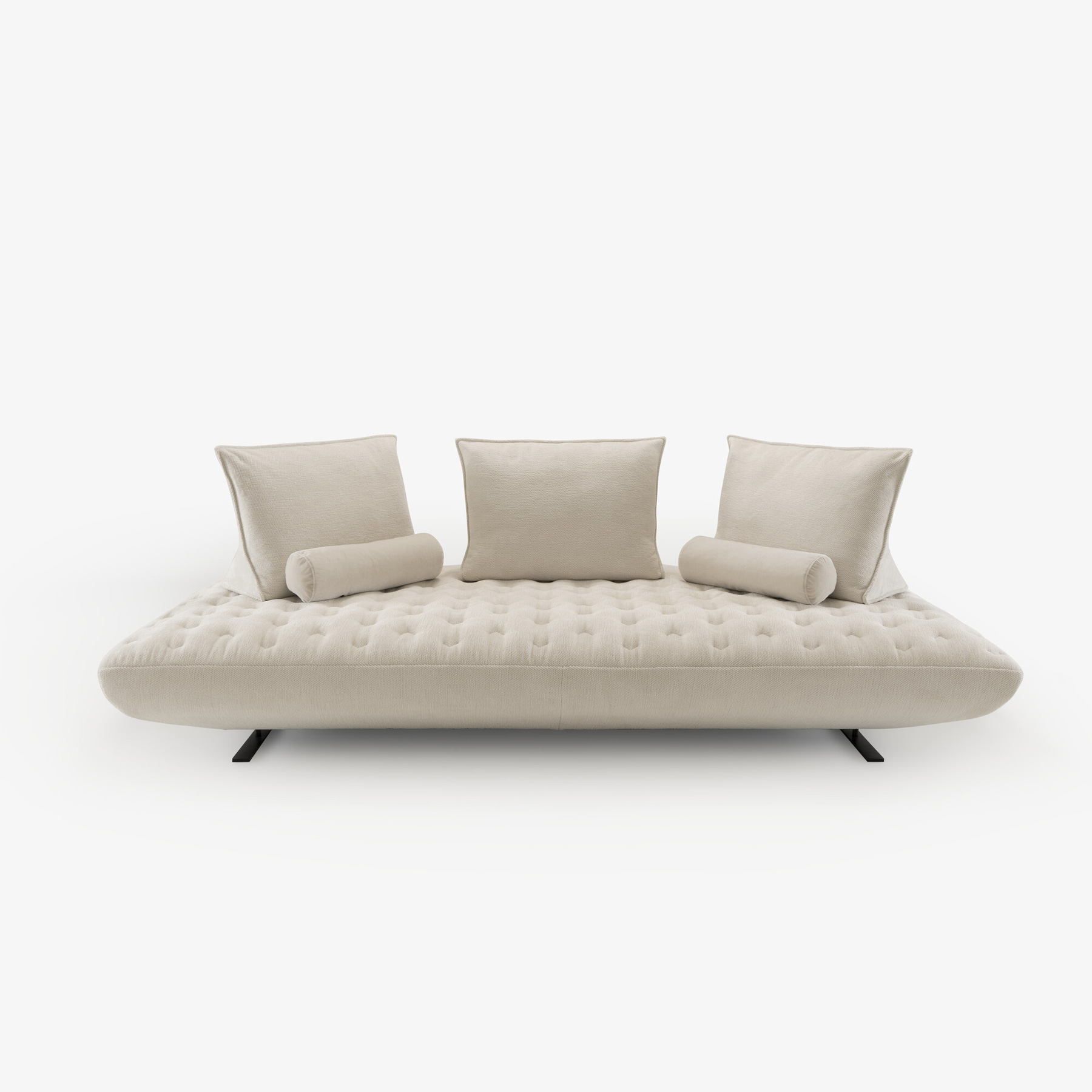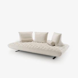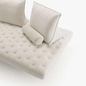 Une assise monobloc matelassée, ultra souple et moelleuse, offrant un confort optimal. Sans l’empilement de coussins, son design épuré et moderne s’éloigne de la fonction canapé-lit du Prado. Il peut même être utilisé sans coussins, pour obtenir une assise pure matelassée au style sobre et raffiné.