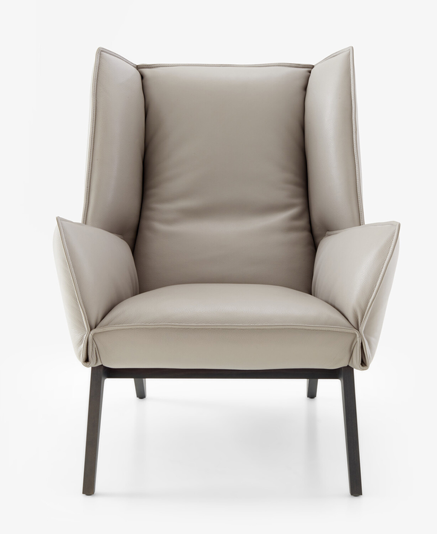 La forme du fauteuil Toa est comme un pliage spontané et intuitif. On a envie de se l'approprier, il est universel. Le piètement, aérien, comme une ossature, se visse dans un corps matelassé. Le repose-pied apporte un supplément de confort et de relaxation. Ce fauteuil peut avoir un coté informel (en textile type coton), mais on le retrouvera également à l'intérieur d'une maison de campagne chic (en laine) ; il peut enfin devenir tout à fait formel et se retrouver dans un « business lounge » s'il est interprété en cuir.