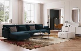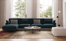 canapé composé de trois pièces et chaise longue avec accoudoirs hauts ou bas qui offre un grand confort.
