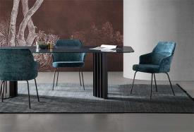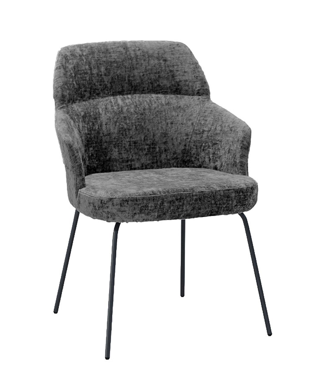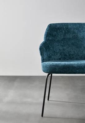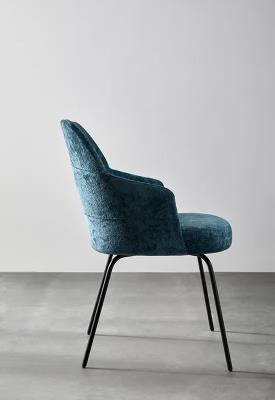 chaise de dossier haut avec pied en métal de Ø16 mm et coque entièrement tapissée en mousse de polyuréthane injectée.
