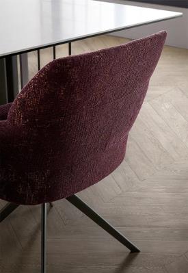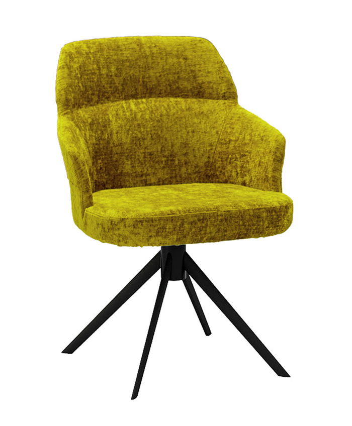 chaise pivotante de dossier haut et pied central central fixe en métal avec coque entièrement tapissée en mousse de polyuréthane injectée.