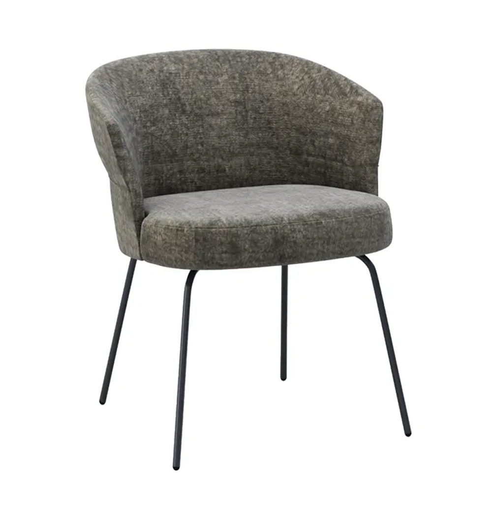 chaise de dossier bas avec pied en métal de Ø16 mm et coque entièrement tapissée en mousse de polyuréthane injectée.