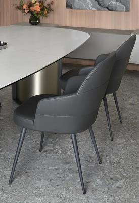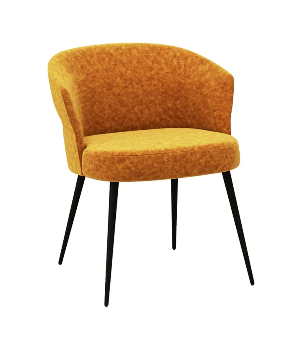 chaise de dossier bas avec pied en métal de tube conique et coque entièrement tapissée en mousse de polyuréthane injectée.