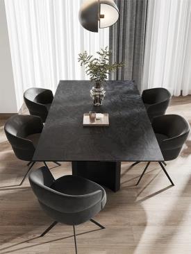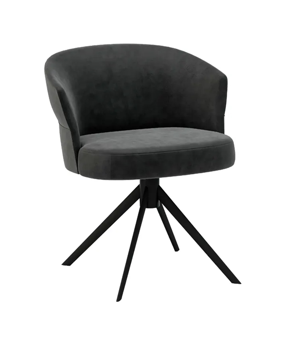 chaise avec dossier bas et pied central fixe en métal. Coque entièrement tapissée en mousse de polyuréthane injectée.