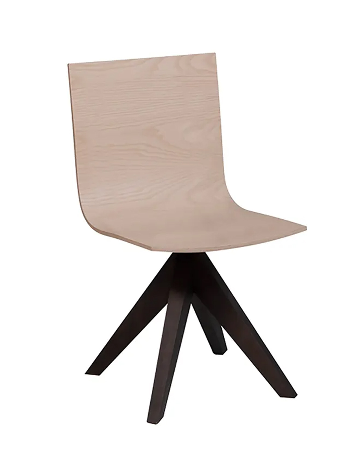 chaise avec dossier bas et coque en bois. Pied central en bois.