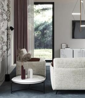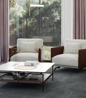Design. Santiago Sevillano Dimensions : l 115/... x h x p cm fauteuil avec accoudoirs hauts ou bas qui offre un grand confort.
