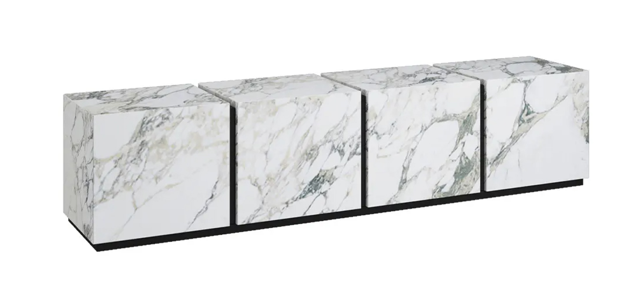 Design. Sergio Rochas meuble tv avec base directement au sol. Sa hauteur totale est de 56 cm