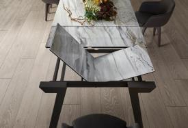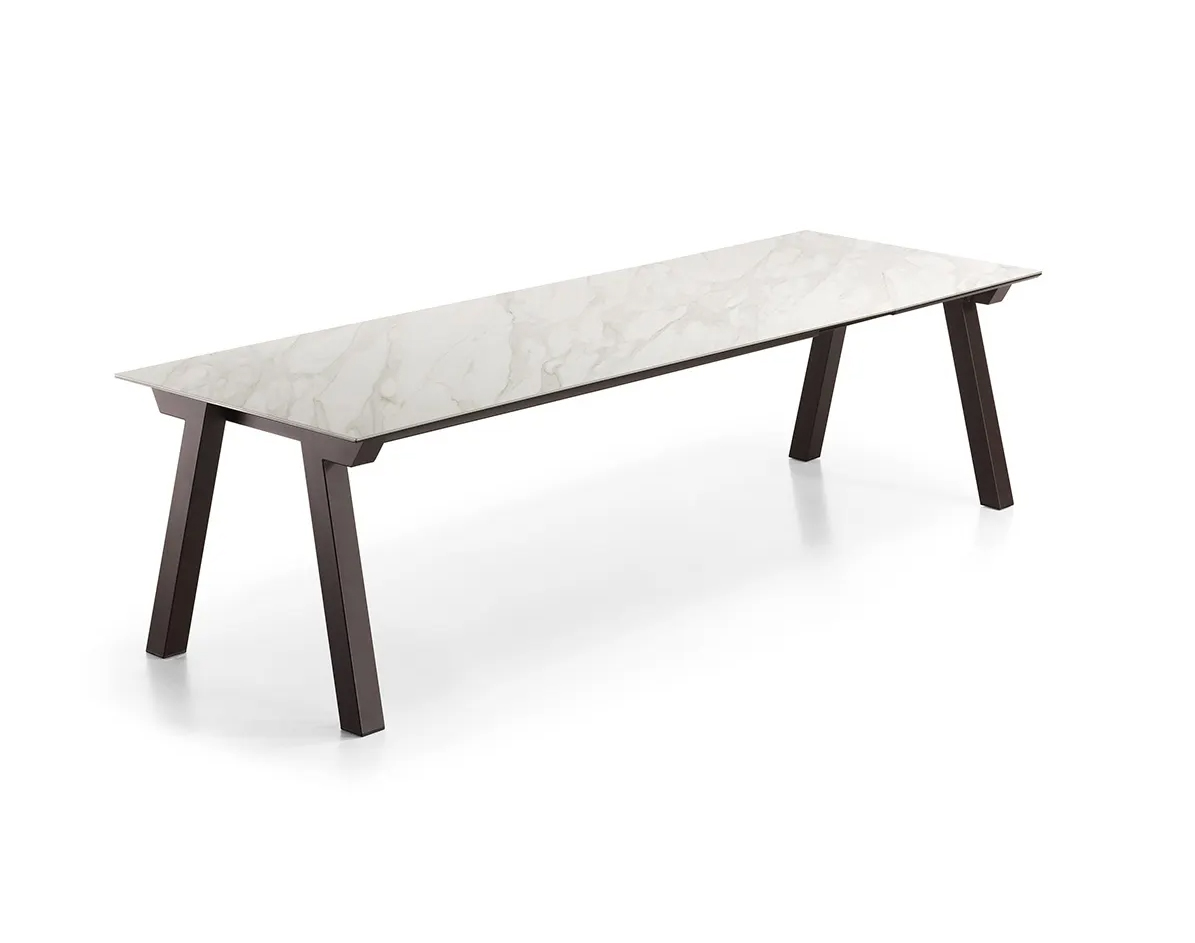 Table extensible avec plateau en céramique disponible en 11 dimensions différentes dont une de 300x120cm extensible jusqu’à 4 mètres.