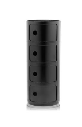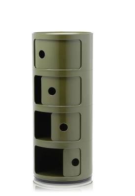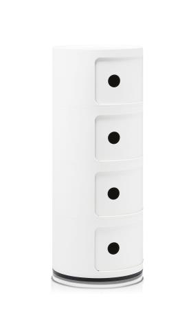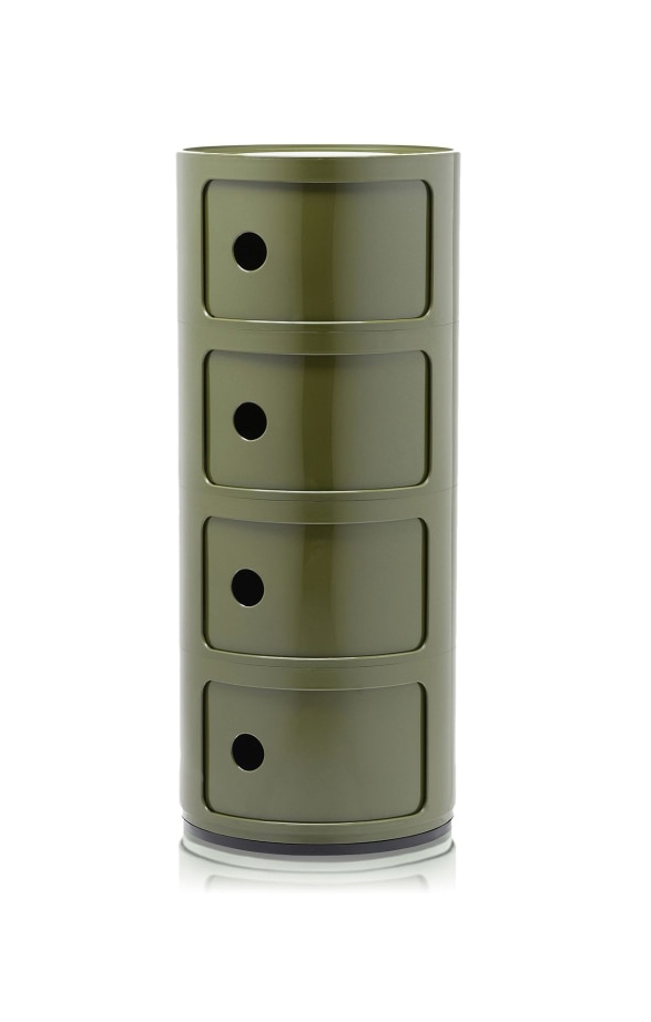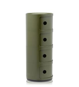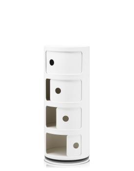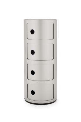 Les éléments Componibili ont été conçus afin de répondre à diverses exigences d'utilisation et pour trouver place dans toutes les pièces de la maison. Créés en 1967, les Componibili sont un classique intemporel du mobilier proposés, aujourd'hui, sous une forme ronde d'un diamètre de 32 cm. Fonctionnels et pratiques, ils trouveront leur place dans tous les espaces grâce à leurs compositions fixes comprenant deux, trois et quatre éléments. Ce modèle est décliné dans six finitions scintillantes et une finition argent mat.