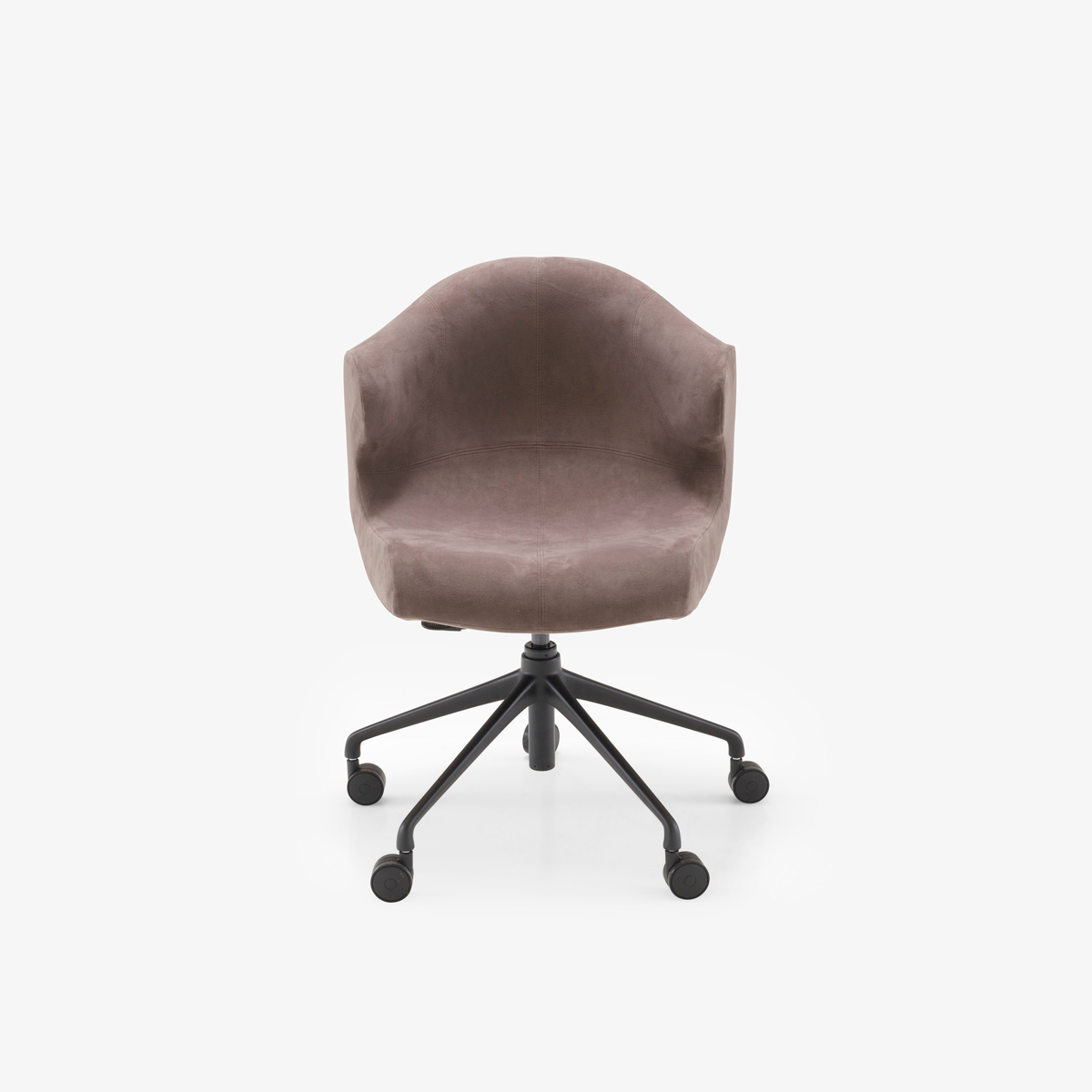 - 1 piétement pivotant et réglable en hauteur, à 5 branches avec roulettes, en aluminium finition noir grainé.