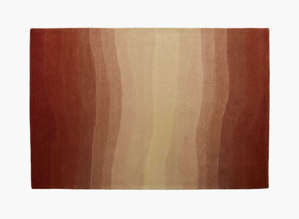 Pour la création de ces tapis, Hélène Poiraud s’inspire des textures, des motifs et des couleurs de la nature. Elle porte un nouveau regard sur les éléments pour en extraire des fragments. Un effet ombré, un subtil clair-obscur inspiré par la lumière et les rayons du soleil. Ce dégradé de teintes chaudes à la fois doux et intense crée un effet de profondeur qui semble nous absorber. Ce tapis lumineux rayonne par son dégradé de couleurs allant d’un roux saturé à un beige brillant et nous propose un voyage lumineux et enveloppant. Le tapis Mirage est réalisé entièrement à partir de laine et tufté main. Il est chiné, c’est-à-dire que 2 fils (l’un clair et l’autre foncé) sont mélangés, ce qui donne un aspect texturé au tapis. Tapis tufté main, 100% laine effet chiné – pas d’équivalence coloris.