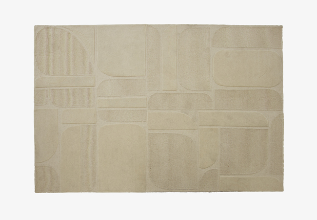 Une invitation à l'apaisement, un souffle de calme, le tapis Quiet est conçu avec soin pour transformer votre espace en un sanctuaire de sérénité. Le motif inspirant de notre tapis, à la manière d’un jardin Zen, est minutieusement choisi pour évoquer la tranquillité et l'harmonie. Hauteur de tuft : fond 5-6 mm, bouclette large 7-8 mm, tuft rasé 10-11 mm. Tapis à usage domestique. Tapis tufté main, 100% laine de Nouvelle Zélande, combinaison de différentes techniques de fabrication, le fond est en bouclette fine et serrée, les motifs géométriques apparaissent en surépaisseur, certains motifs sont en bouclette épaisse, d’autres en tuft rasé. Coloris écru – pas d’équivalence dans les colliers de pompons.