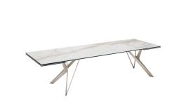 The giants est la nouvelle collection de grandes tables extensibles. le mécanisme spécial naos permet, par les deux allonges, l'extension du plateau de 100 cm (50 cm chacune). la dimension minimum de la table passe de 240 cm fermée à 400 cm ouverte. plateau disponible en verre ou dans dans toutes les finitions céramique. pieds en métal laque’.