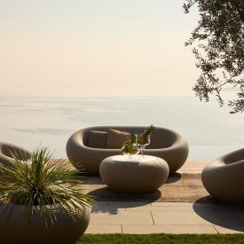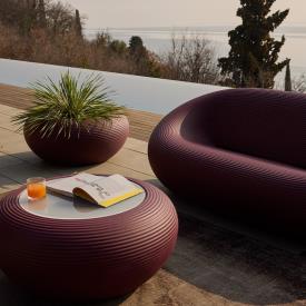 Le canapé Nami se caractérise par une forme linéaire au centre qui s'arrondit aux extrémités. Deux canaux d'évacuation d'eau sont intégrés à sa partie centrale. Il peut accueillir 2 à 3 personnes. Disponible en six coloris, trois sont unis, les trois autres étant obtenus par le recyclage et le mélange de matériaux, avec 2 à 3 nuances différentes.