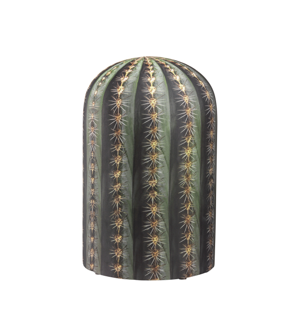 Ce Cactus Pouf L en mousse de polyuréthane est conçu par Maurizio Galante et Tal Lancman. Recouvert d'un tissu extensible adapté à sa forme, il ressemble à l'aspect réaliste d'un cactus pouvant servir d'assise. Il est disponible en deux tailles différentes : la plus grande mesure 60 cm de haut et la plus petite mesure 45 cm de haut.