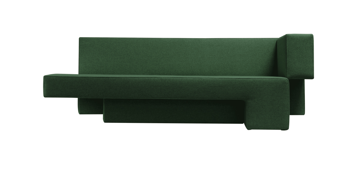 Le canapé Primitive est un nouvel ajout à la famille Primitive. Conçu par Studio Nucleo, il maintient la structure asymétrique et rembourrée du fauteuil en introduisant un nouvel élément comme appui-tête. Cette version dispose également d'un siège plus long permettant à trois personnes de s'y asseoir confortablement