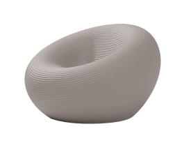 Le fauteuil Nami est obtenu par la rotation d'une section sur un axe diagonal. De forme parfaitement circulaire, il présente des moulures qui caractérisent sa surface, se déployant du centre vers les bords en une succession d'anneaux concentriques. Au centre du fauteuil se trouve le canal d'évacuation d'eau. Disponible en six coloris, trois sont unis, les trois autres étant obtenus par le recyclage et le mélange de matériaux avec deux ou trois nuances différentes.