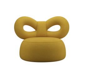 Qeeboo enrichit la famille Ribbon avec le fauteuil Ribbon. Conservant le dossier Ribbon original et son allure résolument féminine, ce fauteuil offre une assise confortable en mousse de polyuréthane recouverte de tissu, invitant à la détente et évoquant un univers d'un romantisme absolu. Revêtu du tissu stretch « Orsetto » de Mario Sirtori, il est disponible en trois coloris.