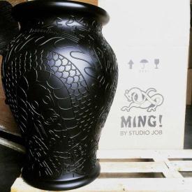Ming est un objet design en forme de vase qui peut fonctionner comme un tabouret ou une table. Honorant l'une des dernières grandes dynasties chinoises anciennes, Ming est le résultat de la relecture par Studio Job du vase en porcelaine chinoise typique, ancien symbole de la culture orientale, généralement décoré de représentations de dragons, d'animaux et de fleurs.