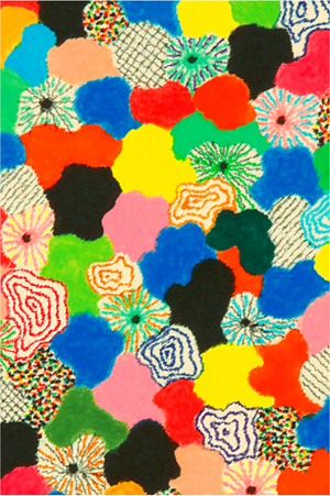 Ce dessin appartient à la série de tableaux picturaux « Mostri » conçue par Alessandro Mendini en 2014. Il s’inspire de nombreuses références, de l’univers naïf de l’Amazonie aux symboles et utopies caractéristiques de sa pensée. Un motif de pure fantaisie, composé en patchwork d’éléments hétérogènes et inhomogènes, capable de susciter des hypothèses indicibles sur des contes anciens.