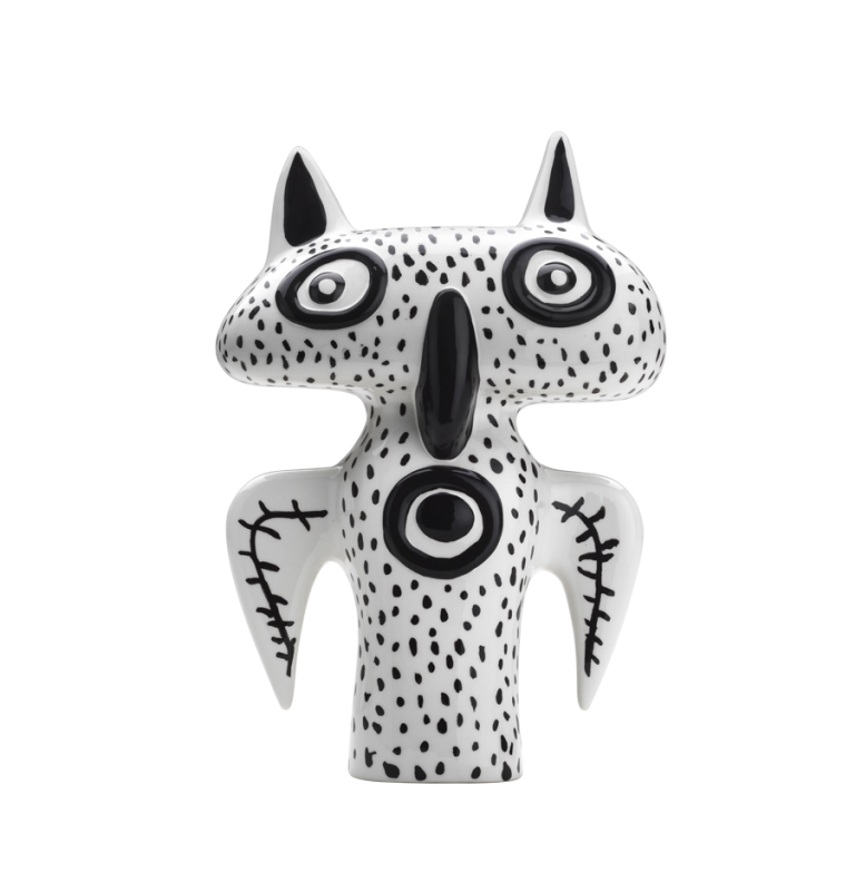 Ces sculptures en noir et blanc représentent différents animaux à la personnalité affirmée. Découvrez Spike, le hibou.