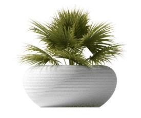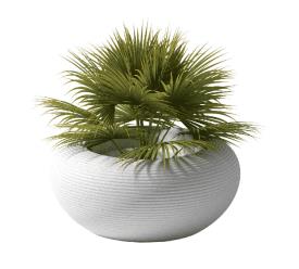 Le pot de fleurs Nami Planter Mix se caractérise par un corps rond en polyéthylène recyclable et un trou central permettant d'y placer des plantes ou des fleurs. Disponible en six coloris, trois d'entre eux sont unis , tandis que les trois autres sont obtenus par le recyclage et le mélange de matériaux, avec deux ou trois nuances différentes .